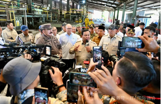 Prabowo总统携数位内阁部长出席了仪式。他强调,此次查封并移交资产的行动,充分表明了政府改革印尼锡产业的决心。